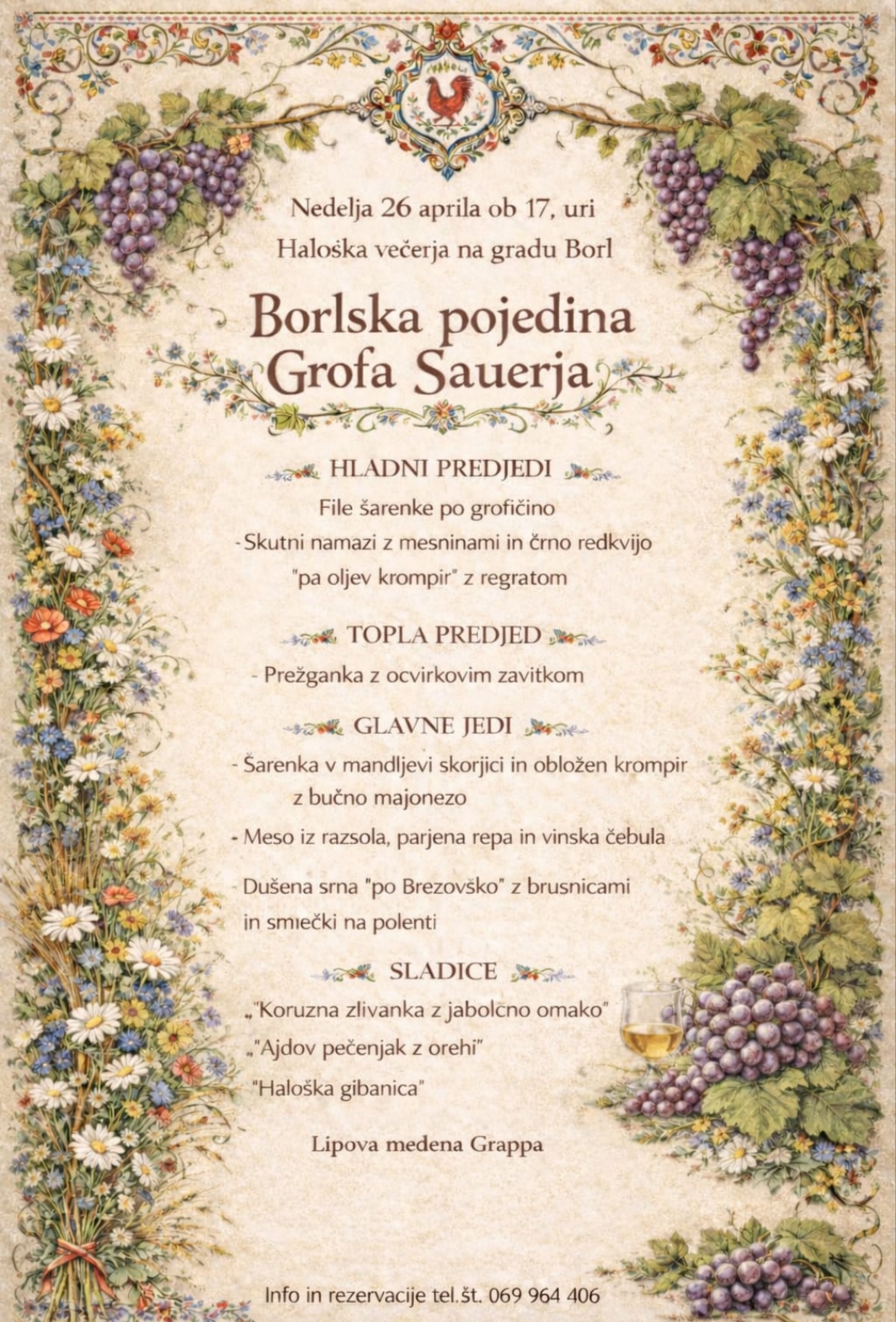Vabljeni na večer vrhunske kulinarike, prefinjene elegance in brezčasne romantike na Borlski pojedini grofa Sauerja.